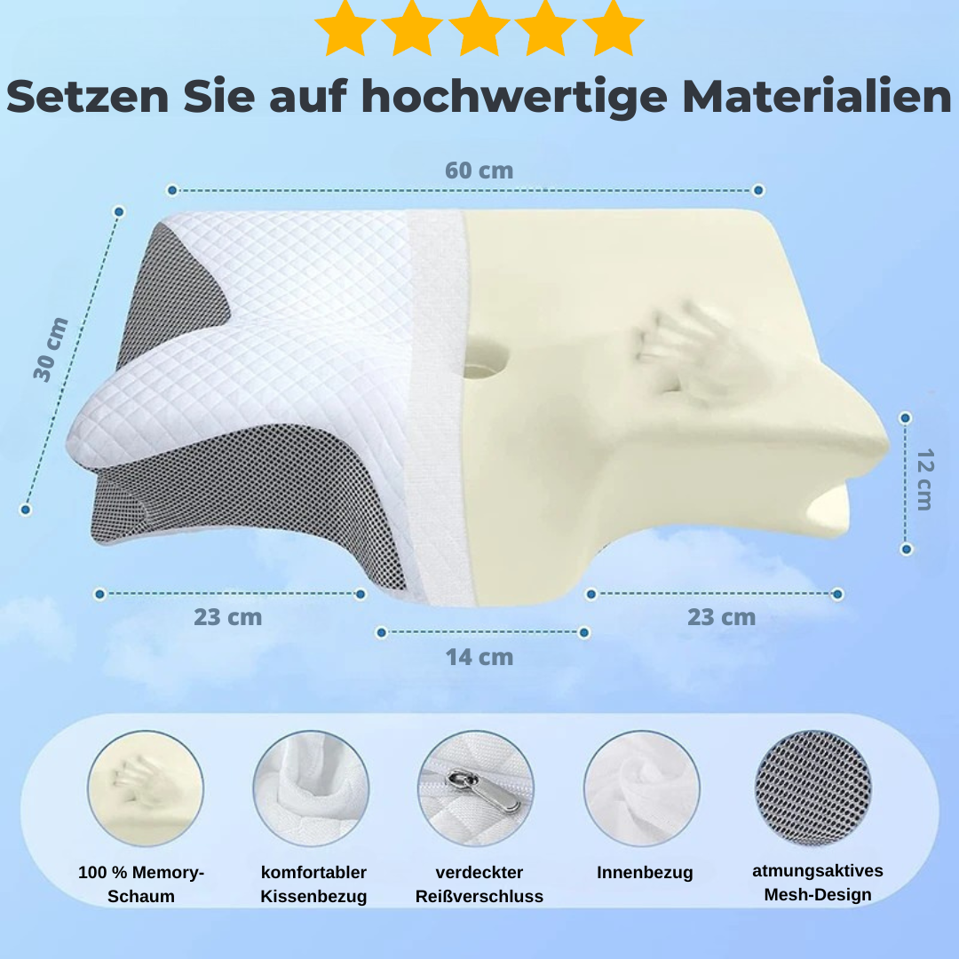 ErgoCloud ist kein gewöhnliches Kissen. Es ist ein durchdachtes, ergonomisch entwickeltes Schlafsystem, das deine Wirbelsäule gezielt unterstützt und Schmerzen aktiv vorbeugt.