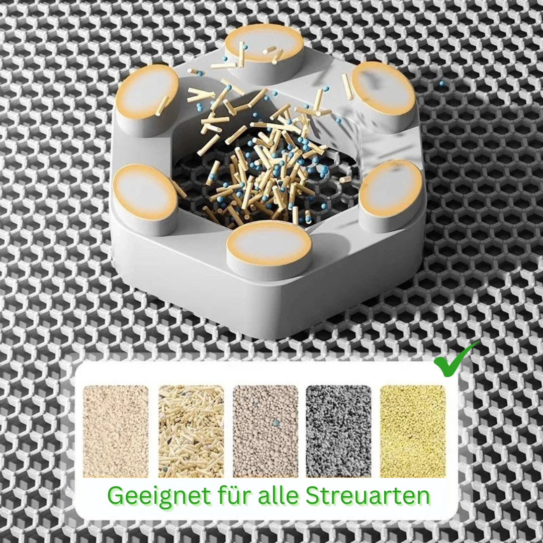 🐾 Zweilagige Wabenstruktur – fängt Streu direkt beim Verlassen der Toilette auf