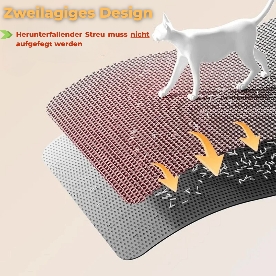 Mit ihrem zweilagigen Wabendesign fängt sie die Streu direkt an den Pfoten auf.