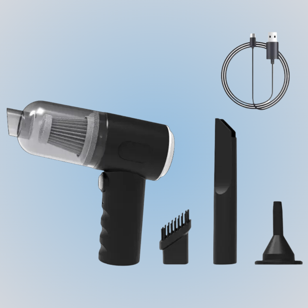 Der Mini-Staubsauger wird bequem über USB aufgeladen, was maximale Mobilität ermöglicht. Die Akkulaufzeit reicht für typische Einsätze in kleinen Bereichen. Für längere Reinigungen empfiehlt sich eine Zwischendurch-Ladung.