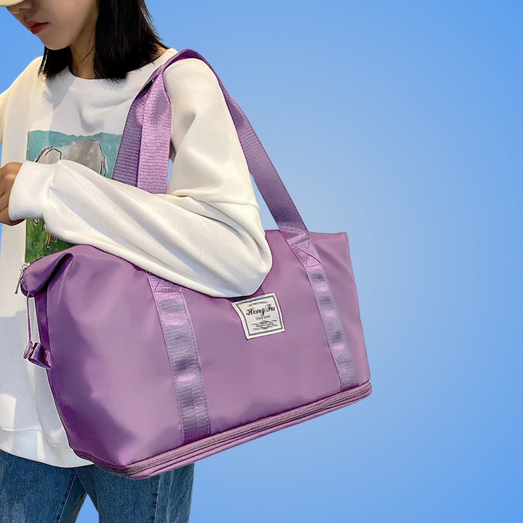 Die Tasche verfügt über ein extra Bodenfach, in dem du Schuhe, nasse Kleidung oder Wäsche separat und hygienisch verstauen kannst. Im Hauptfach helfen weitere Innenfächer und Taschen dabei, Ordnung zu halten und alles schnell zu finden.